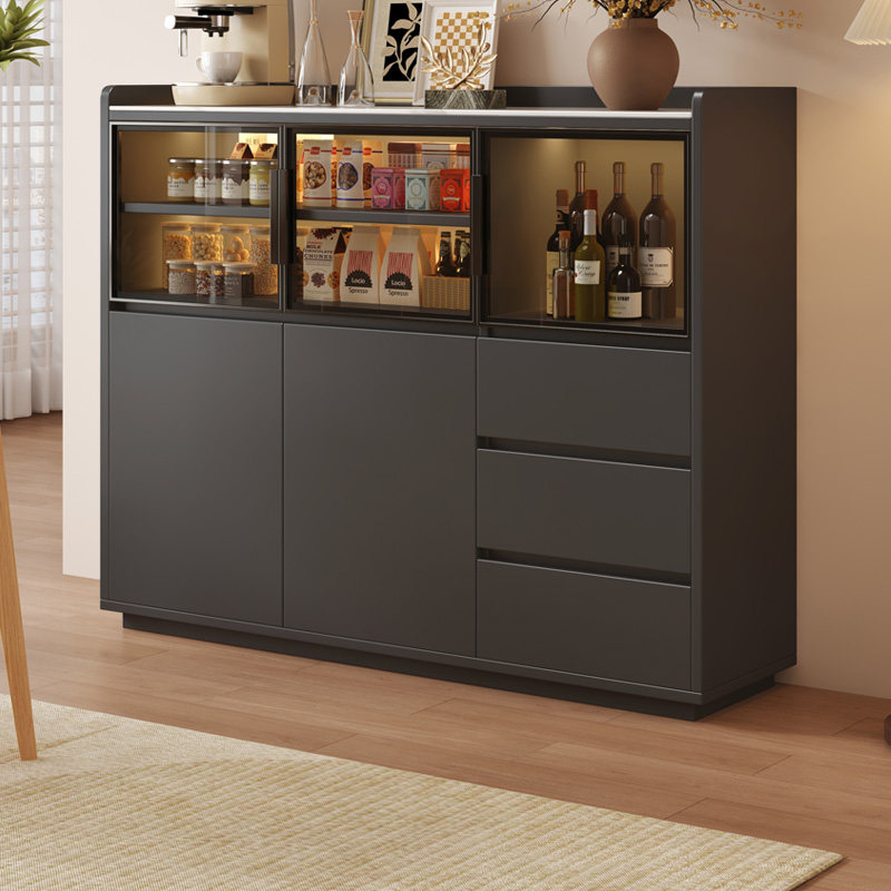 岩板餐边柜客厅轻奢茶水柜餐厅备餐柜收纳储物柜实木简约现代靠墙