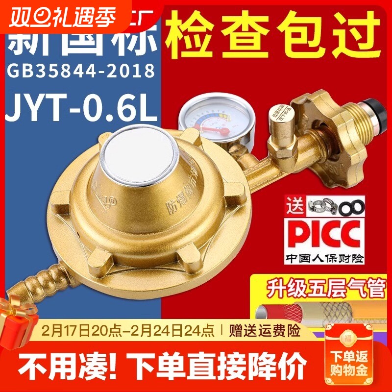 先锋牌新国标0.6液化气减压阀家用防爆燃气灶热水器低压阀煤气阀