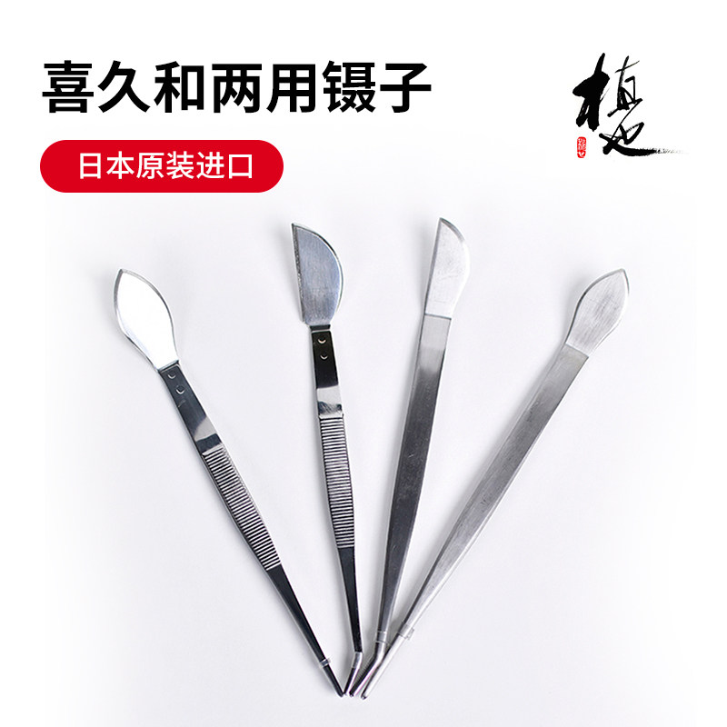日本原装进口喜久和两用镊子不锈钢压土兰花镊多肉叶片夹枯叶弯头
