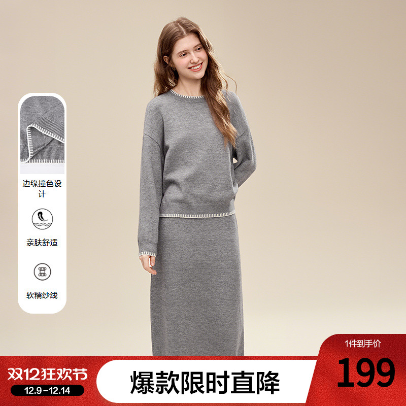 betu百图简约通勤毛衣半身裙套装女2025年冬季新款时尚两件套