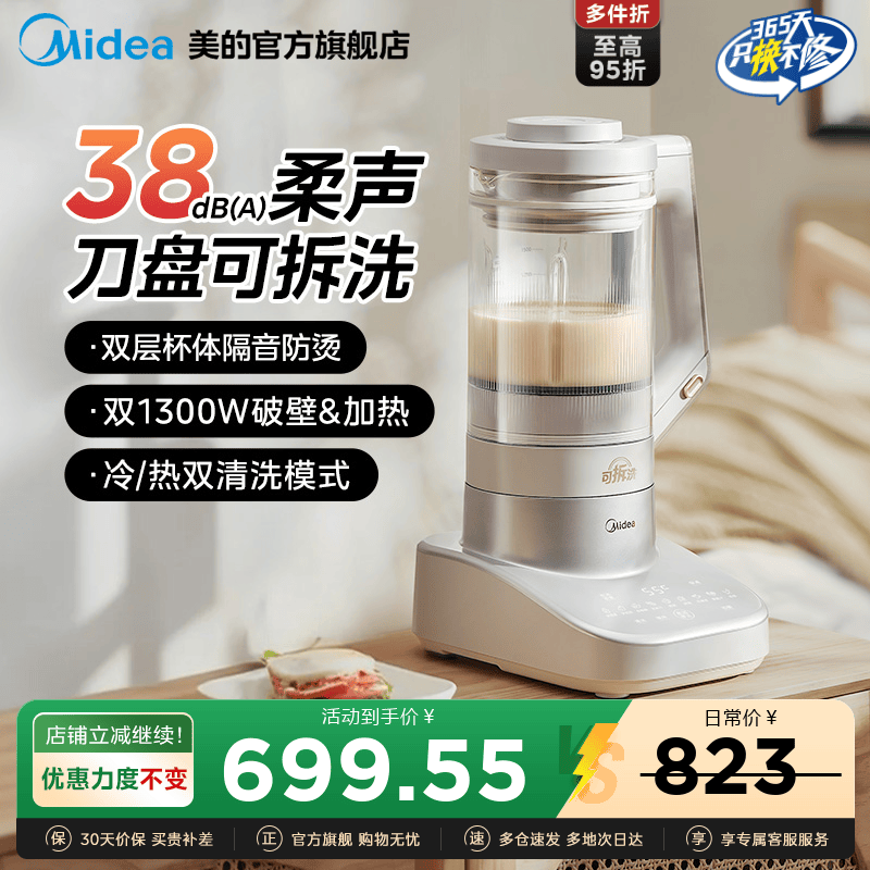 美的破壁机家用隔音罩新款豆浆机多功能料理机榨汁机官方旗舰店静