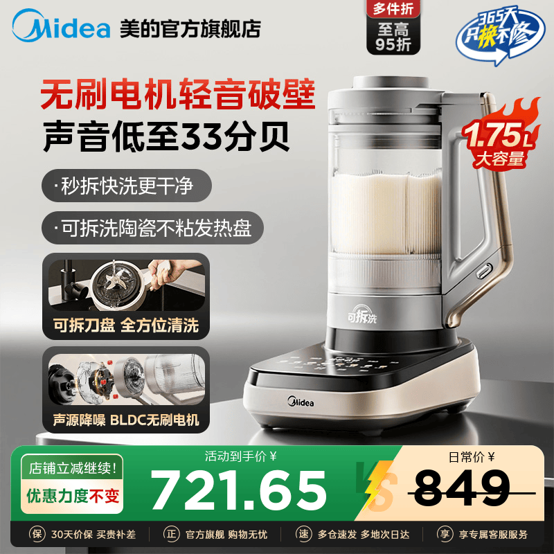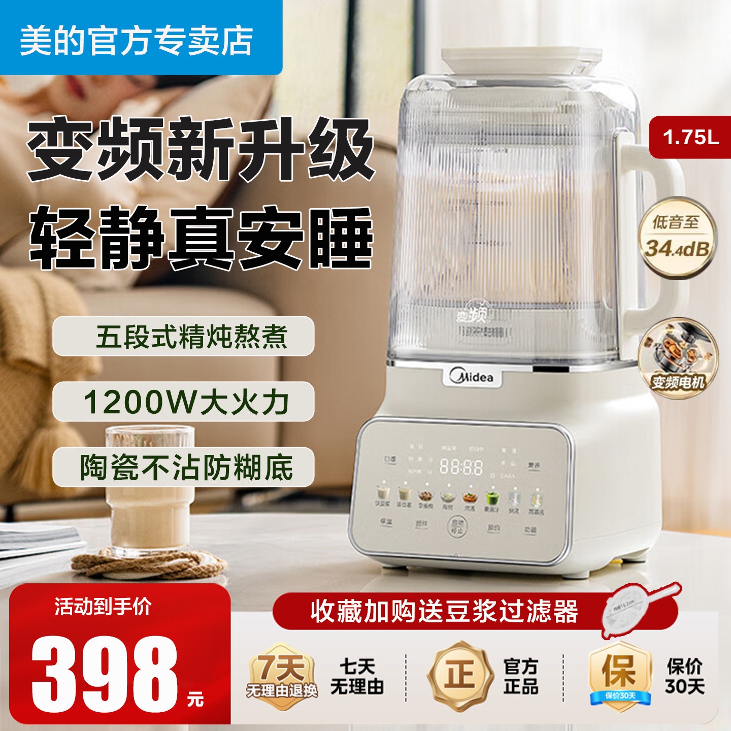 美的变频破壁机1.75大容量家用多功能豆浆料理机榨汁低音2025新款