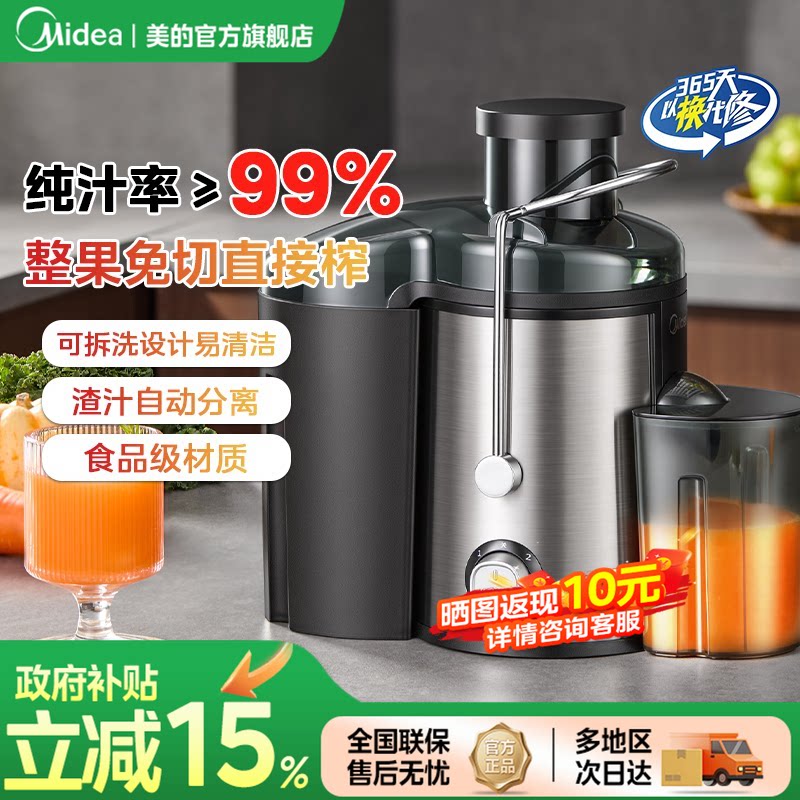 美的榨汁机家用渣汁分离全自动果汁机大口径易清洗料理原汁橙汁机