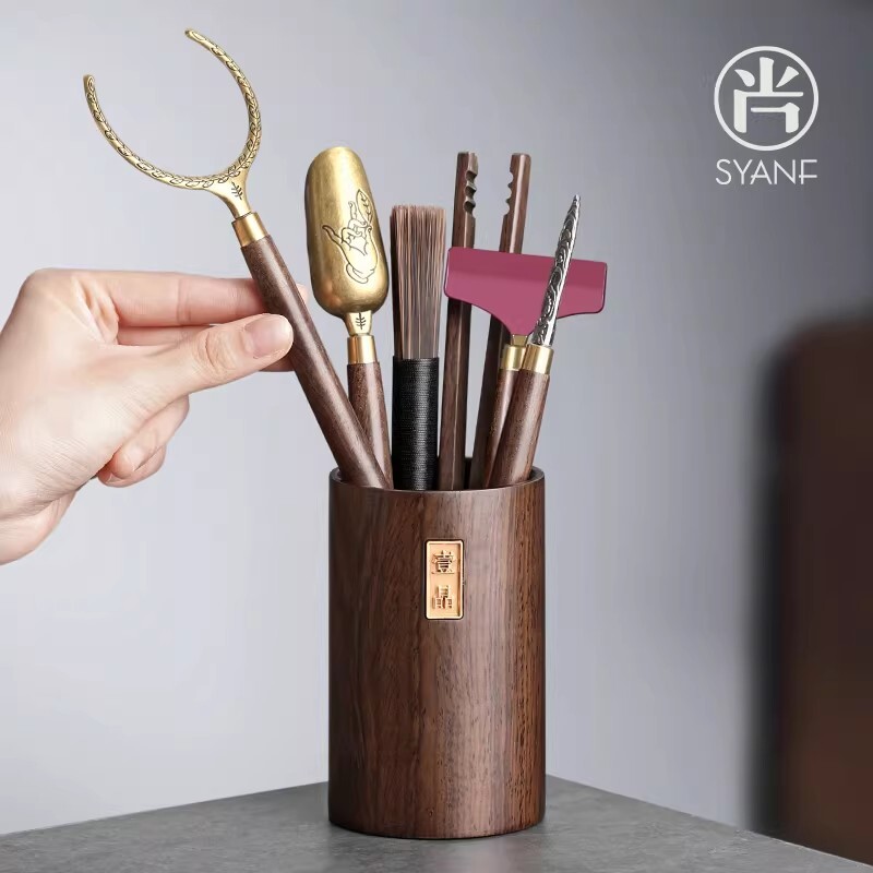 胡桃木茶道架子六君子套装配件大全茶桌茶刀茶夹茶刷泡茶工具茶具