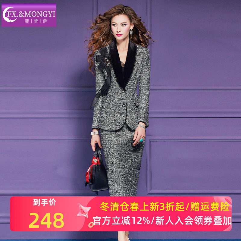 菲梦伊西装职业套装女秋季高级感商务干练气质西服包臀裙OL工作服