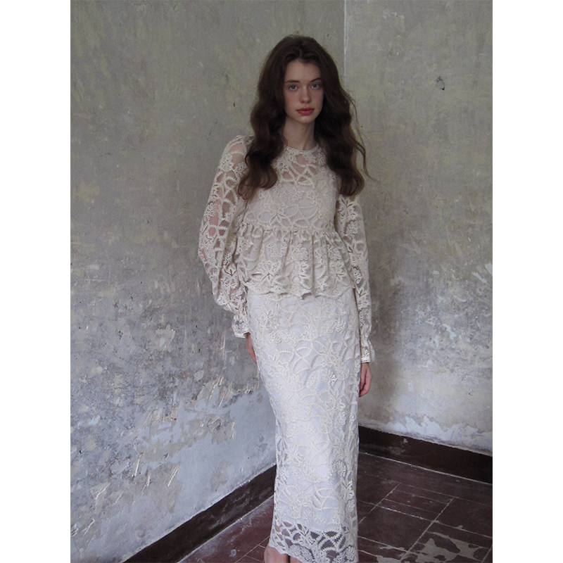 ZHUYIYI 法式蕾丝衫上衣+高腰包臀早秋半身裙套装女简约原创设计