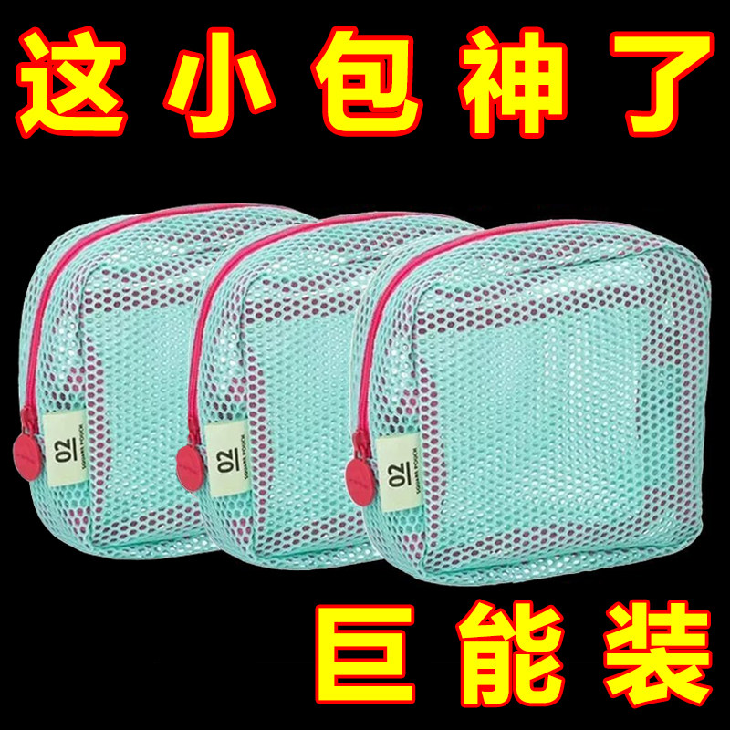 多巴胺豆腐包迷你网纱便携旅行洗漱化妆品收纳包补妆包网格杂物包