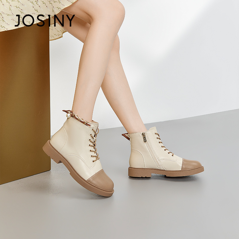 卓诗尼女鞋正品马丁靴女款撤柜秋冬英伦风拼色甜酷百搭显瘦短筒靴