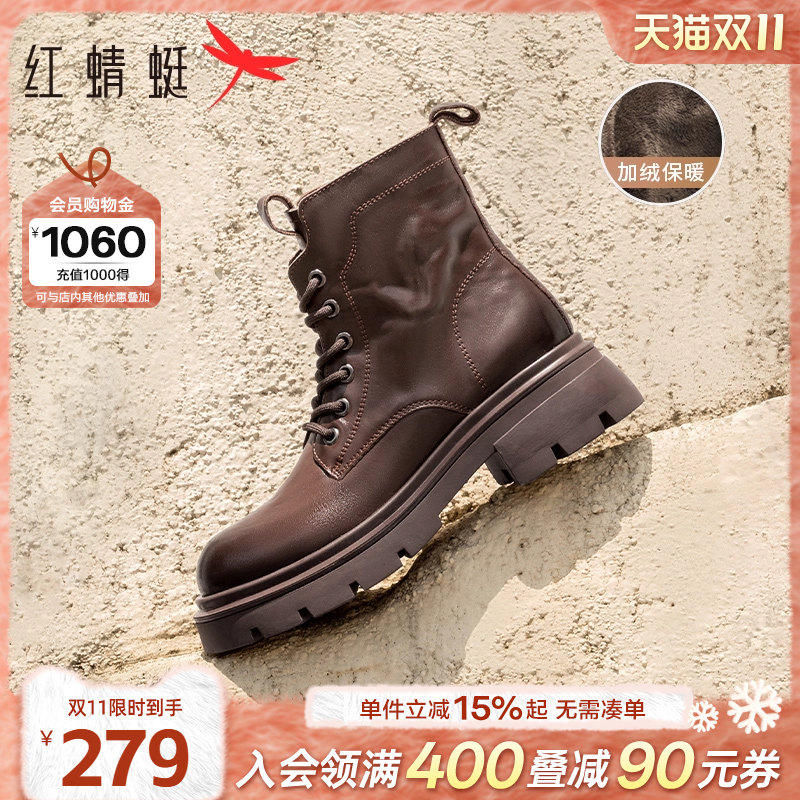 红蜻蜓官方正品马丁靴女新款英伦风秋冬季厚底增高短靴真皮靴子女