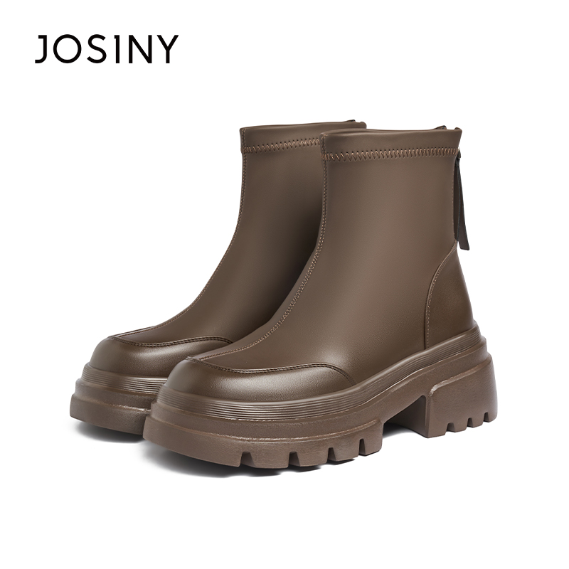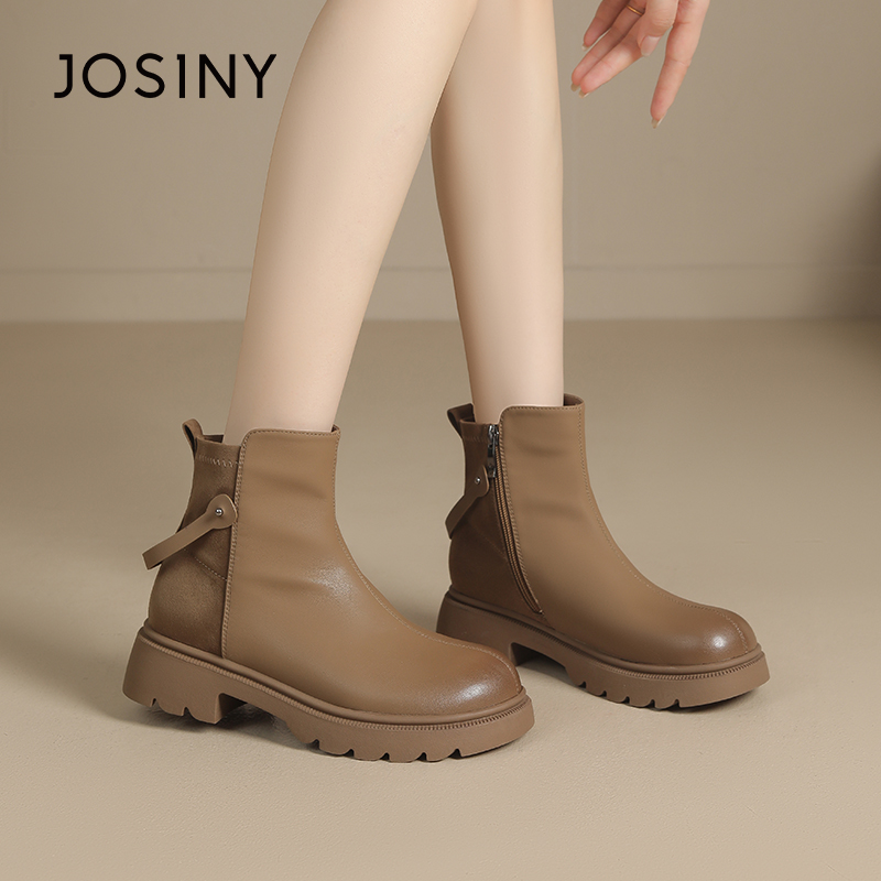 卓诗尼女鞋秋冬撤柜正品马丁靴圆润鞋头时尚增高厚底显瘦休闲百搭