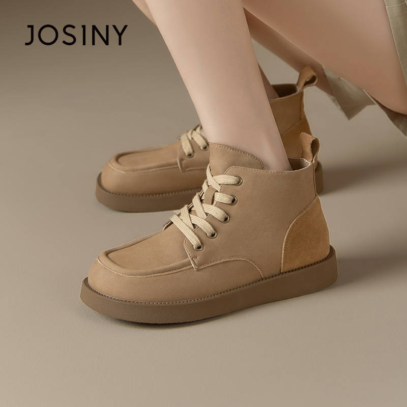 卓诗尼女鞋秋冬撤柜正品马丁靴复古圆头时尚耐磨增高显瘦休闲百搭
