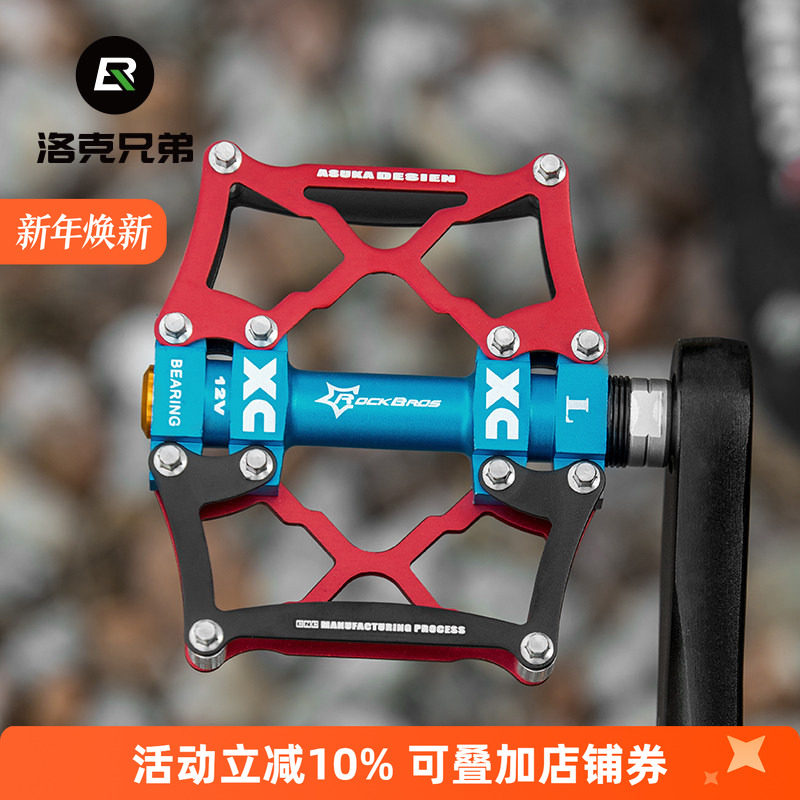 洛克兄弟山地车脚踏铝合金自行车脚踏板培林防滑脚蹬单车骑行配件