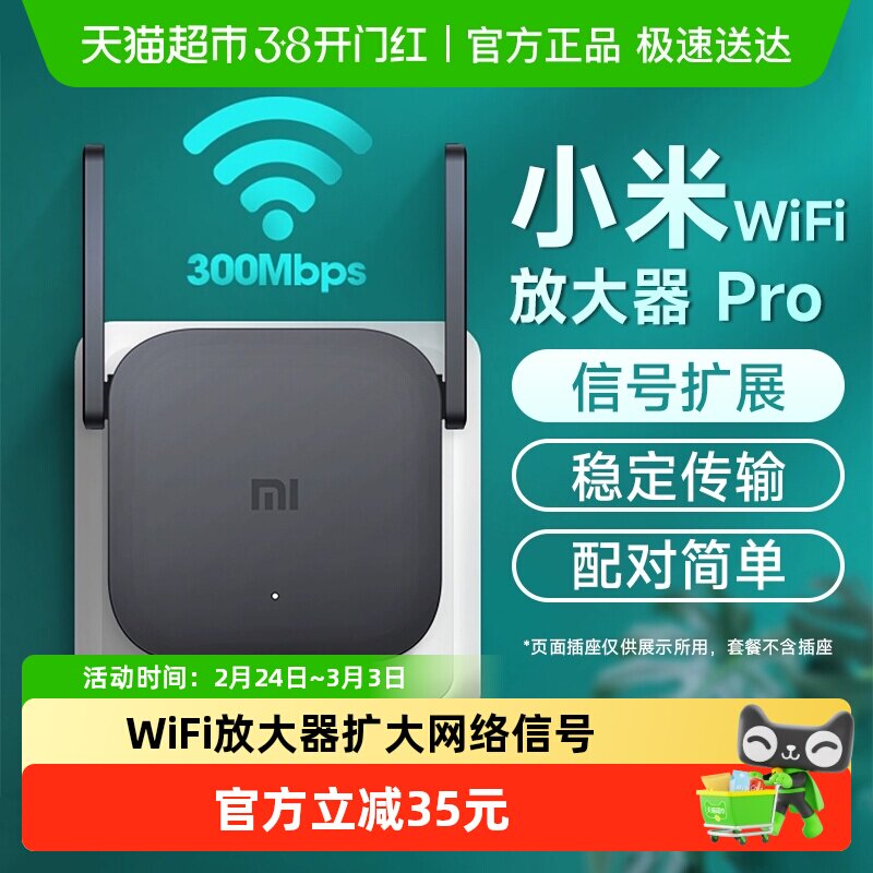 下拉享优惠小米WiFi放大器Pro无线路由器家用增强扩大网络信号