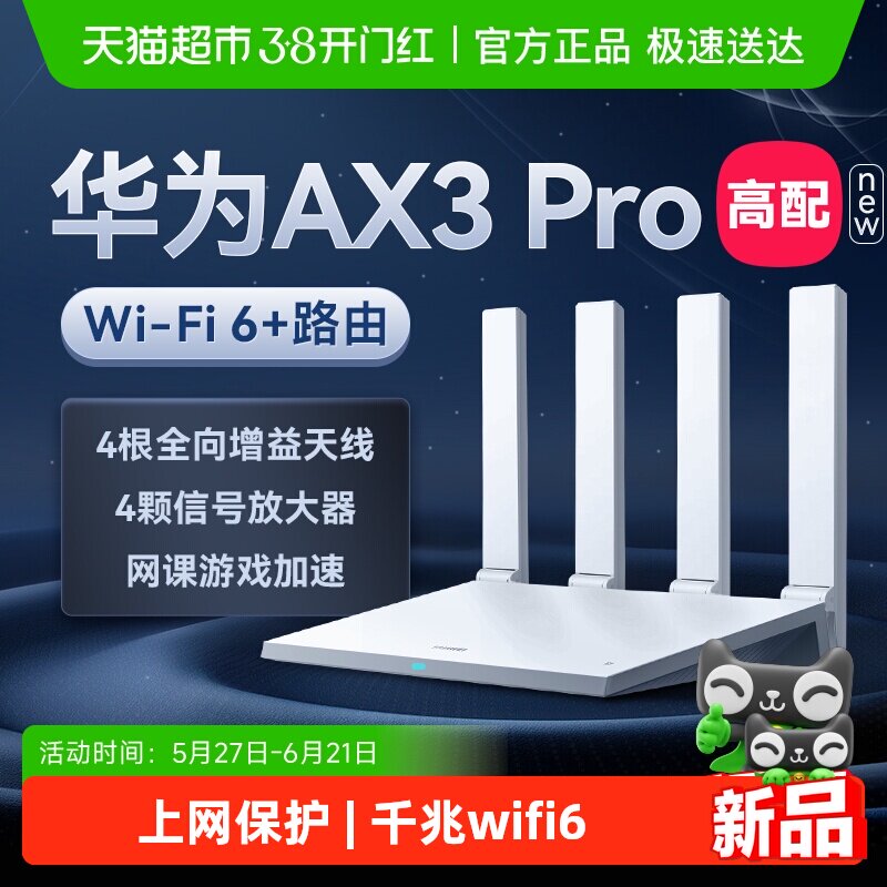 华为路由AX3 Pro new WiFi 6+ 3000 Mbps 一碰联网 免密接入 智能加速千兆端口无线速率上网家用高速路由器