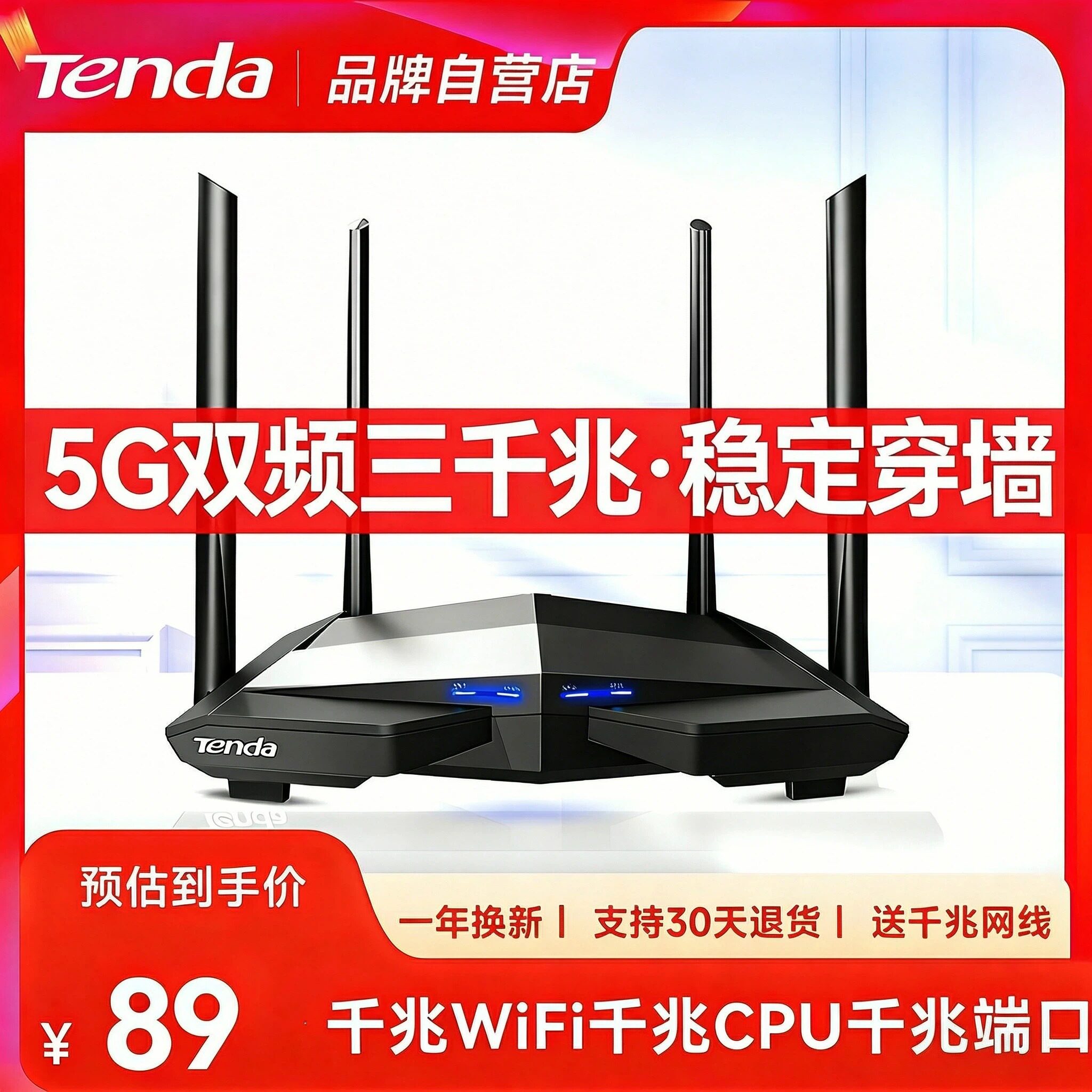 【现货当天发】腾达全千兆路由器5G家用办公上网AC1200M网络双频无线路由高速家用信号增强覆盖全网通