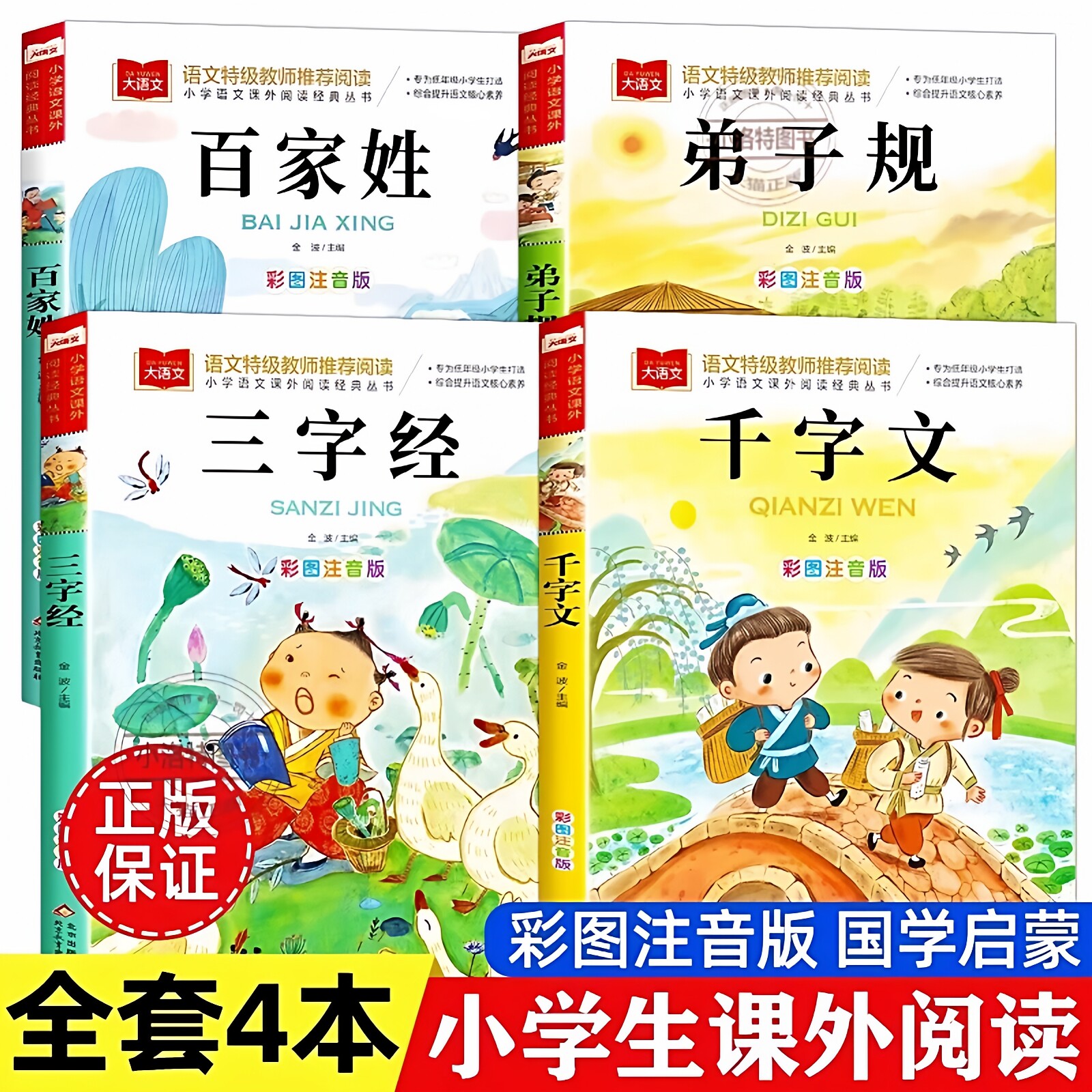 三字经百家姓千字文弟子规全四册 注音版小学生正版儿童国学启蒙经典书籍 彩图一二年级阅读课外书上下册幼儿大字少儿中国传统文化