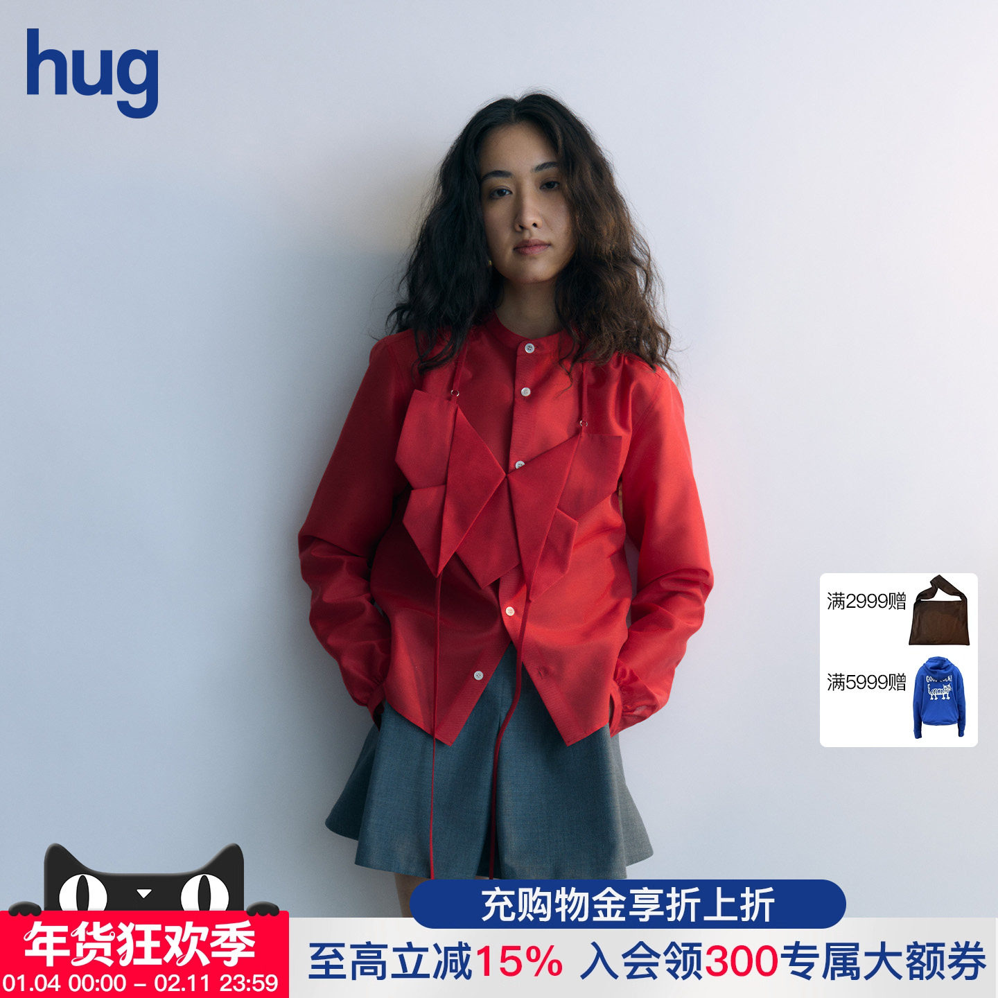 邱莹莹 HELA AOMI “金蝶丝绒”法式蝴蝶钩花高级感正肩衬衫