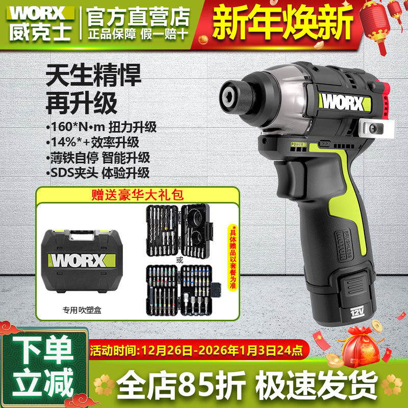 威克士无刷冲击起子机WU132X锂电充电手钻起子电批电动螺丝刀129