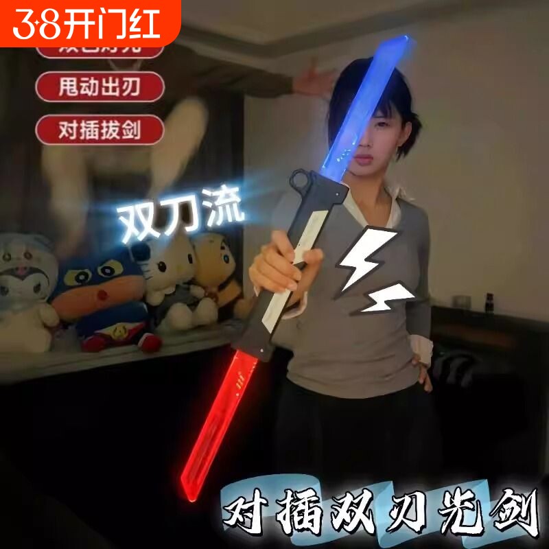 过年双刃伸缩光剑双刀流炫酷对插发光剑武士刀可旋转儿童玩具塑料