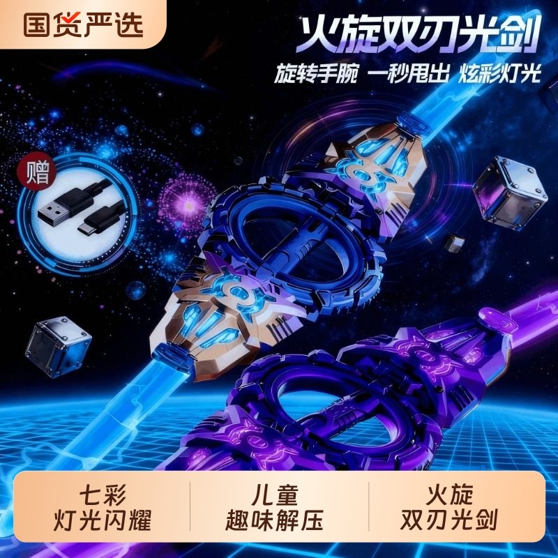 火旋剑双刃旋转光剑双头伸缩轴承宝刀发光激光剑男孩玩具礼物双刀