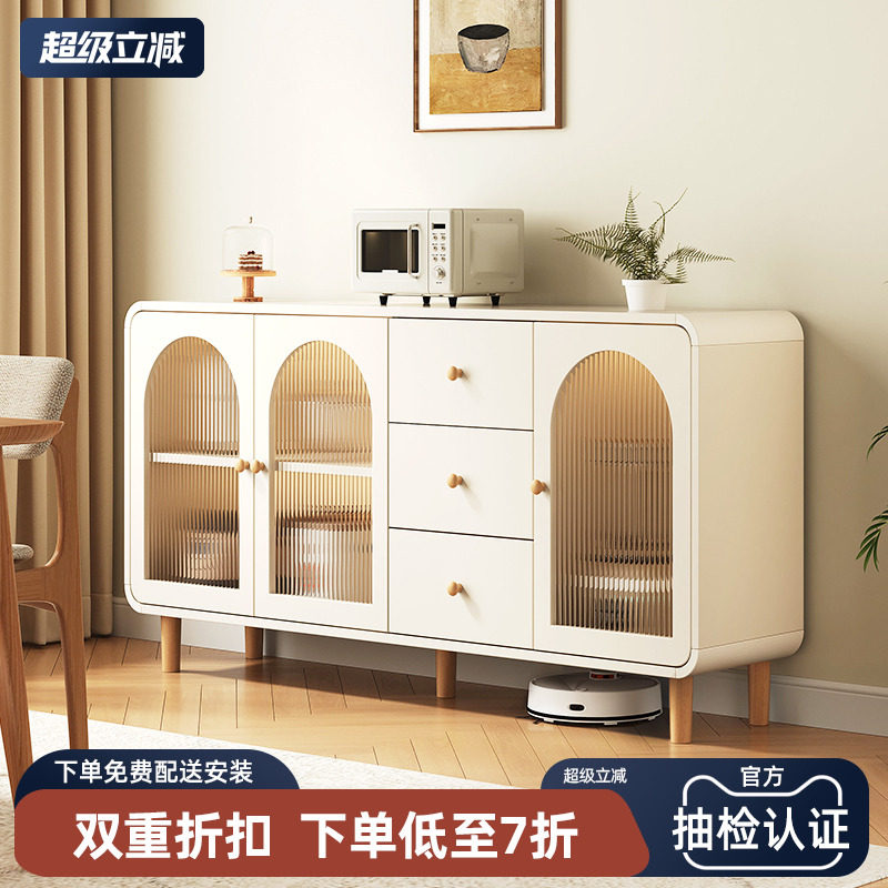 餐边柜轻奢原木奶油风茶水柜2026新款客厅厨房储物柜高柜靠墙一体