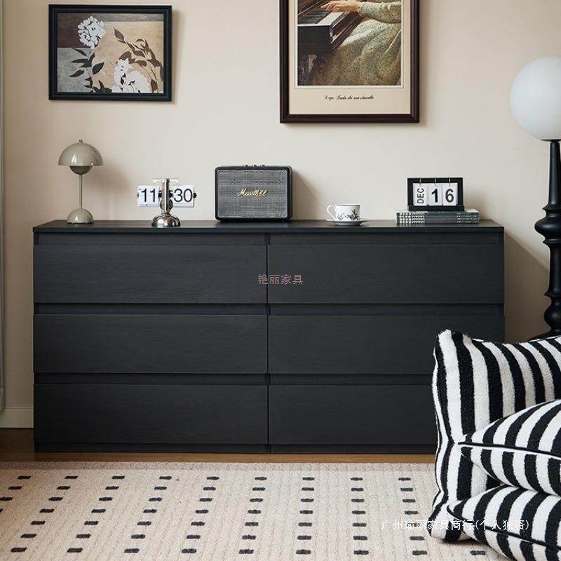 法式奶油风斗柜实木客厅靠墙八斗柜黑白复古抽屉柜床尾置物储物柜