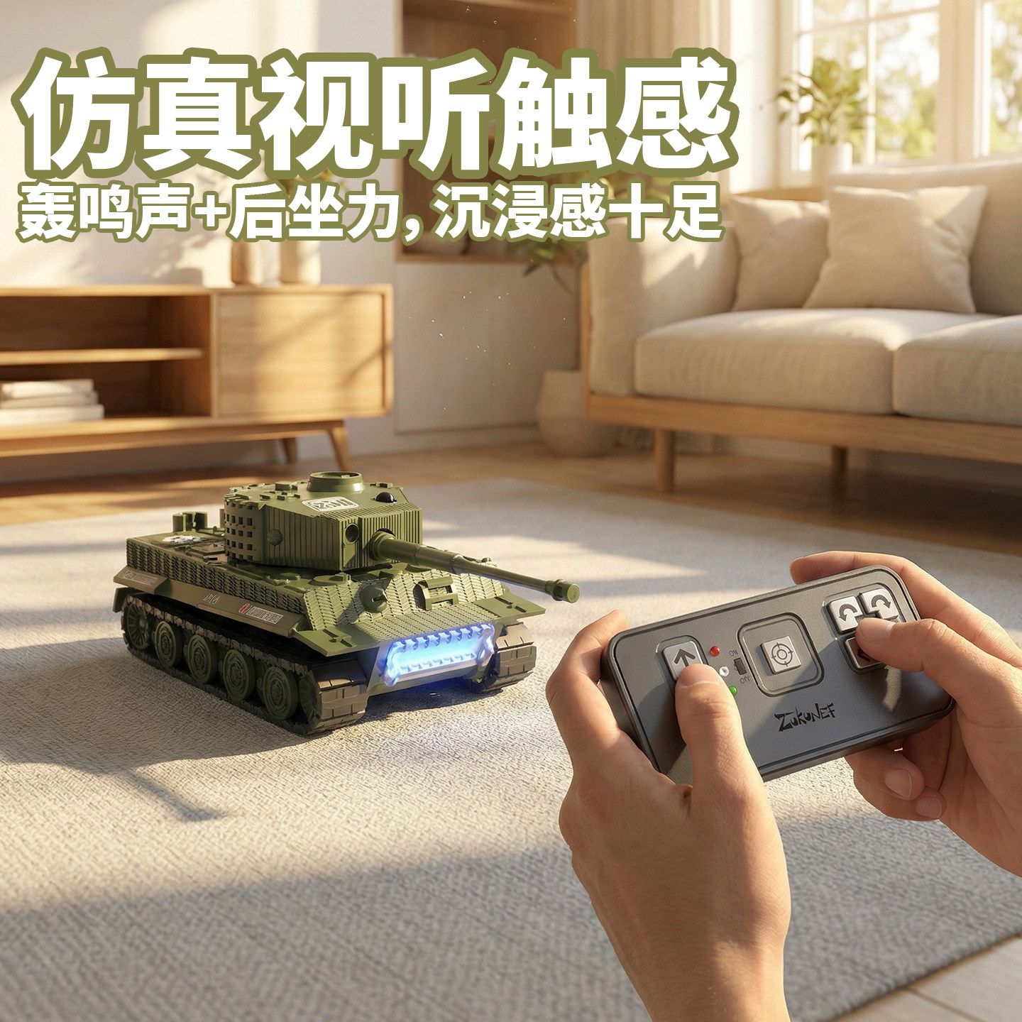 1:64迷你遥控对战坦克仿真开炮儿童遥控车军事坦克履带灯光音乐