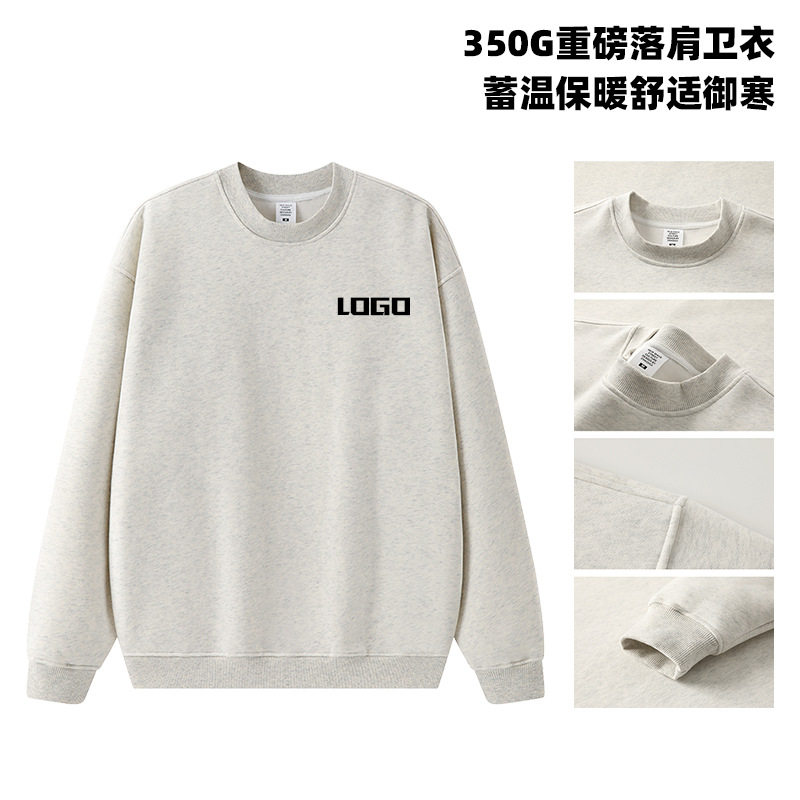JZX男装丨秋冬350g欧美卫衣男高品质纯色保暖加厚圆领潮牌卫衣女