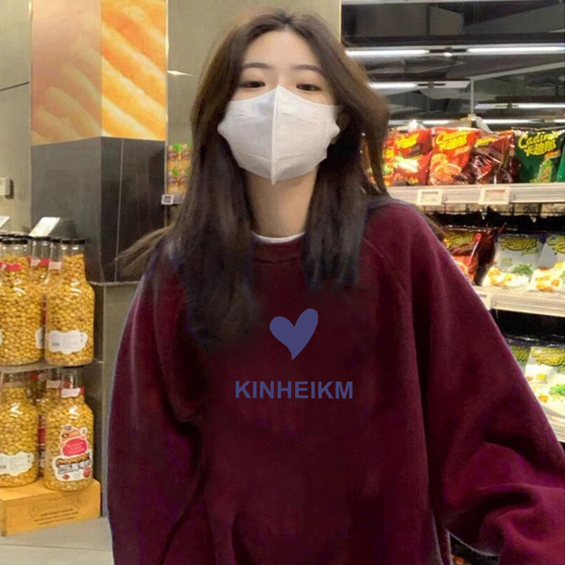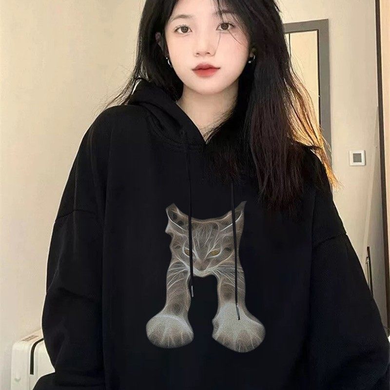 宽松别致个性潮牌卫衣女冬季新款简约可爱趣味印花加绒学院风上衣
