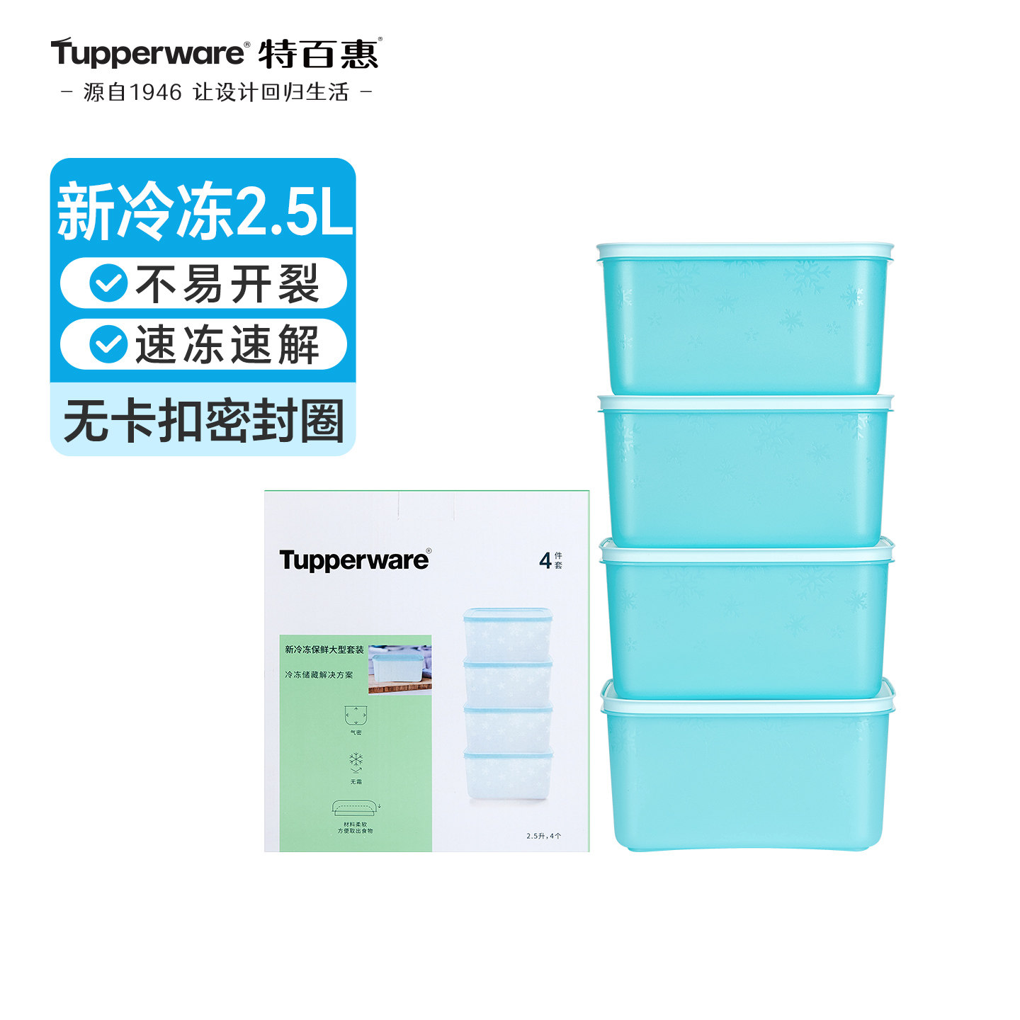 特百惠雪影大型冷冻藏食品保鲜盒5.7L冰箱密封收纳2件套送礼佳品
