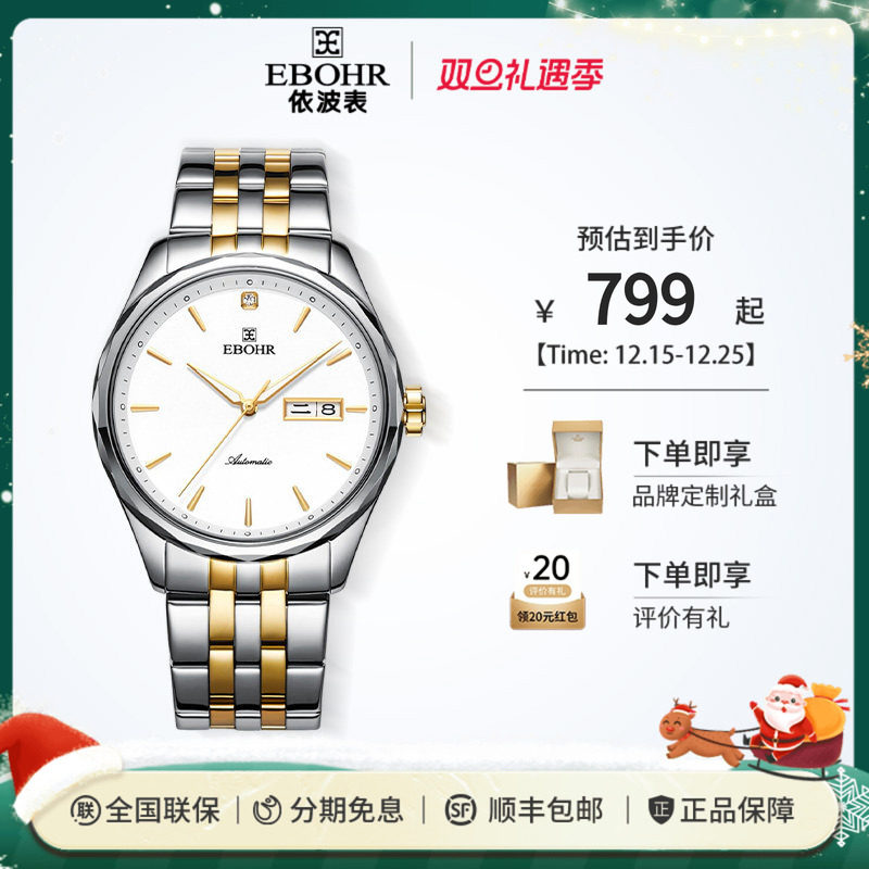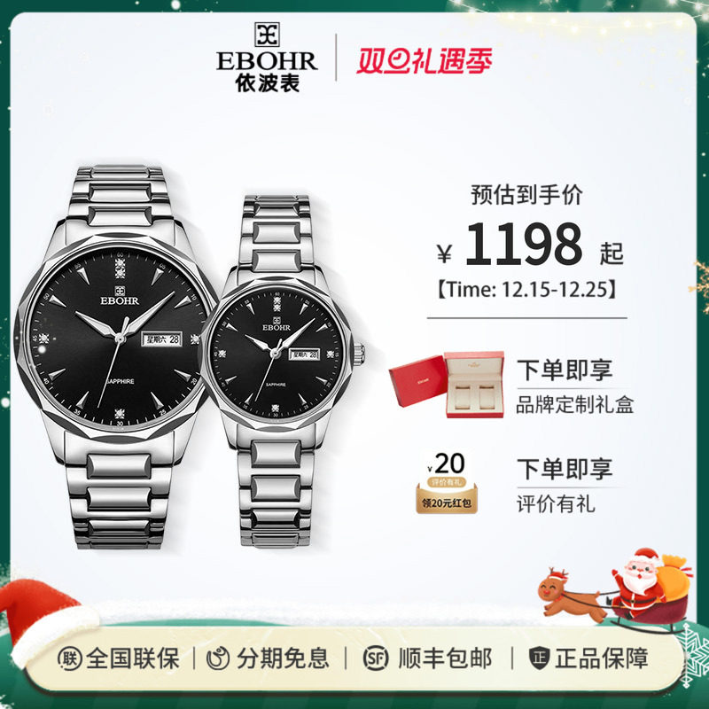 依波表EBOHR情侣款手表男女表钨钢表圈双日历防水时尚腕表5633