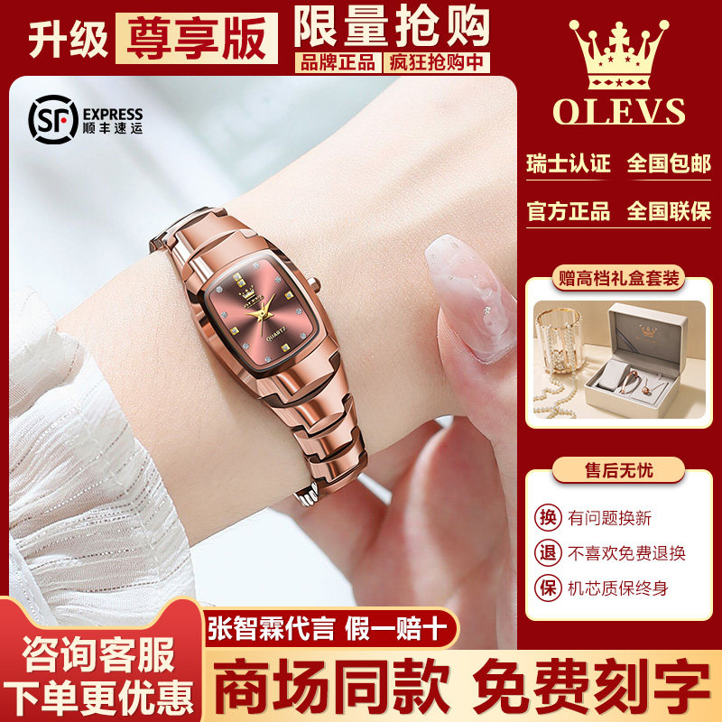 欧利时女式手表女款名牌正品方形钨钢小表盘石英女表2025新款爆款