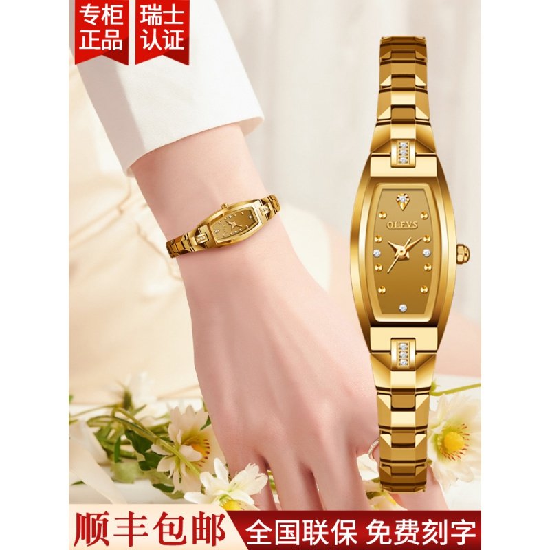 新款瑞士正品不掉色的小金表精致小巧点钻高级轻奢钢带钨钢手表女