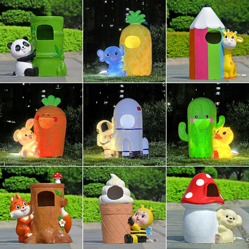 户外卡通动物环保垃圾桶雕塑玻璃钢园林摆件幼儿园景区公园装饰品