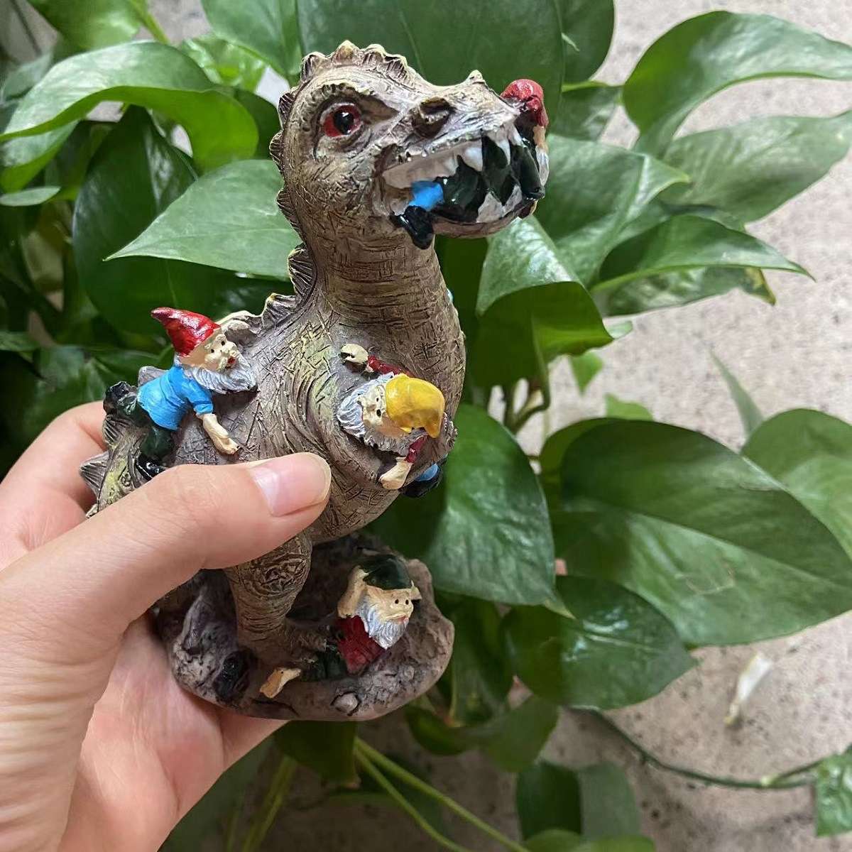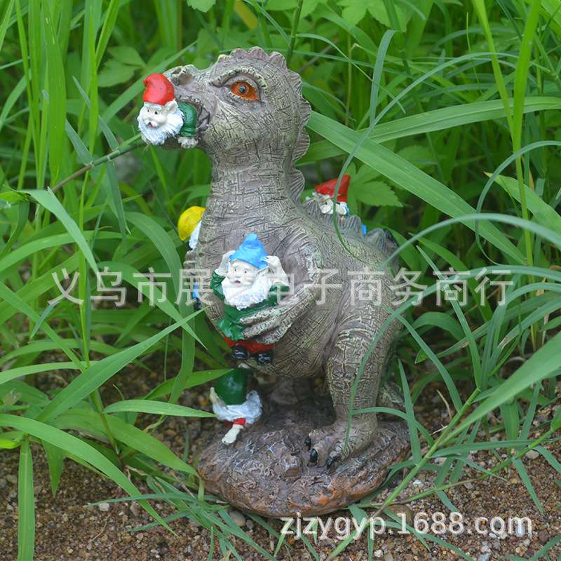 侏罗纪恐龙抓侏儒树脂园林摆件猫咪抓侏儒卡通树脂工艺品花园摆件