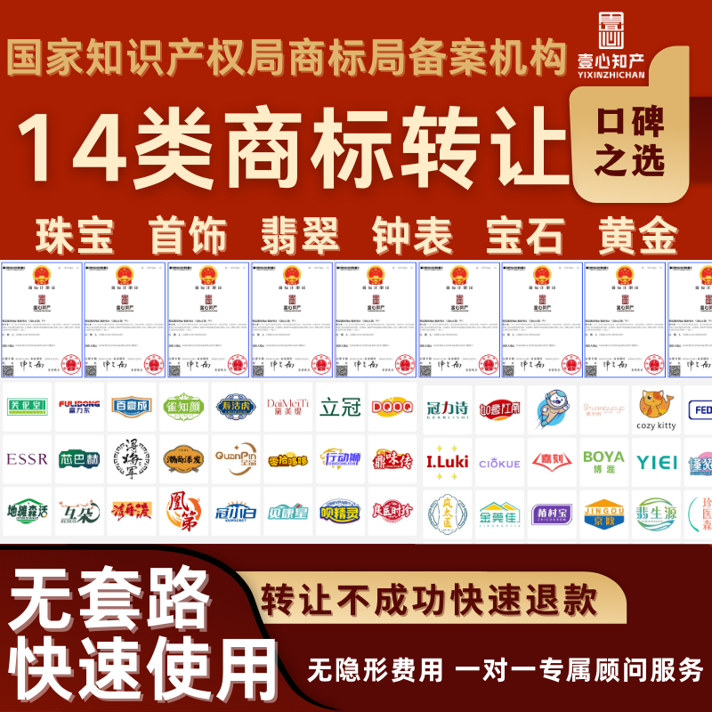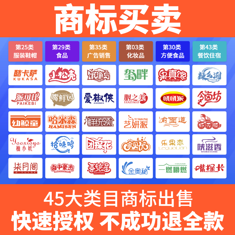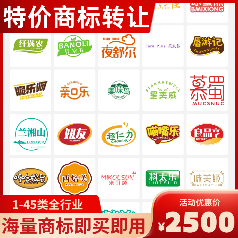 商标转让购买全包注册商标买卖45类现成商标特价出售授权即买即用