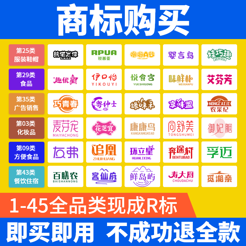 商标购买转让注册商标特价出售1-45全类现成R标买卖品牌商标交易
