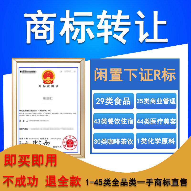 商标转让1-45全品类购买过户买特价R标注册出售查询交易即买即用