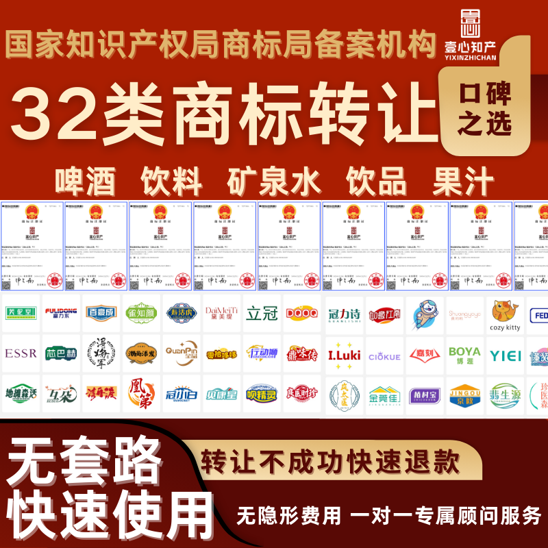 32类商标转让出售购买注册申请食品服装白酒茶叶品牌买卖知产代办