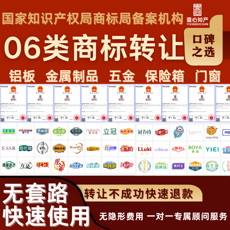 06类商标转让出售购买注册申请食品服装白酒茶叶品牌买卖知产代办