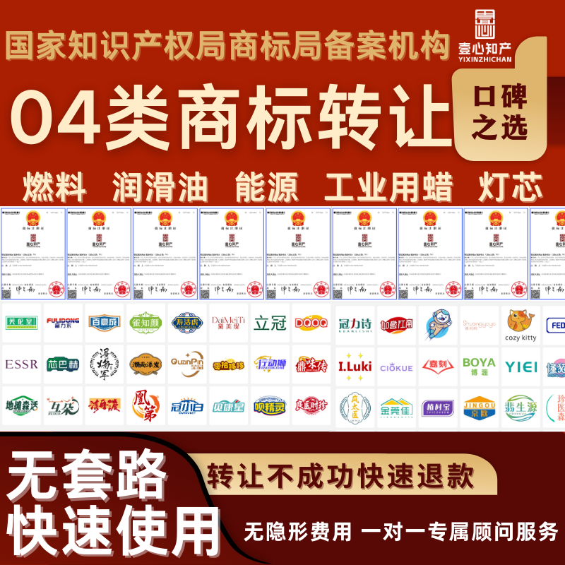 04类商标转让出售购买注册申请食品服装白酒茶叶品牌买卖知产代办