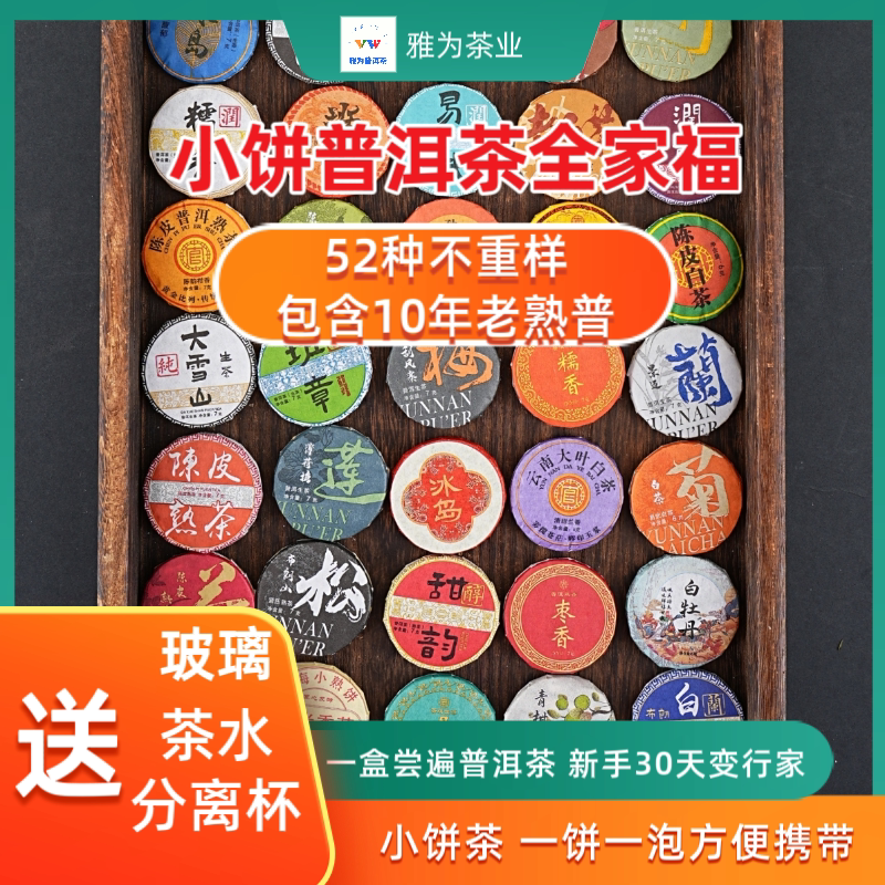 送杯子普洱茶全家福52种不重样礼盒小饼生茶熟茶红茶含2014年老茶