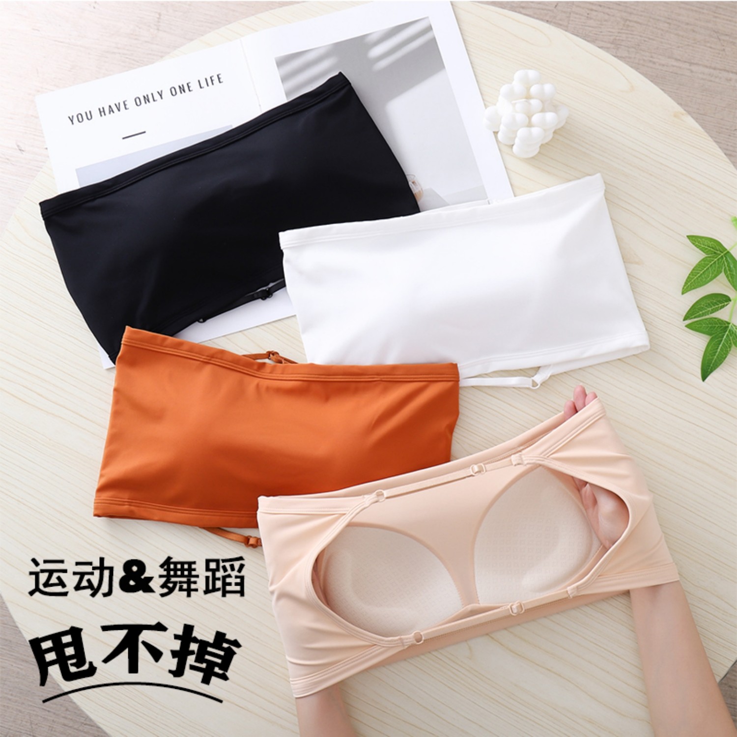抹胸式文胸女固定杯隐形运动舞蹈防走光露肩内衣无肩带防滑一字围
