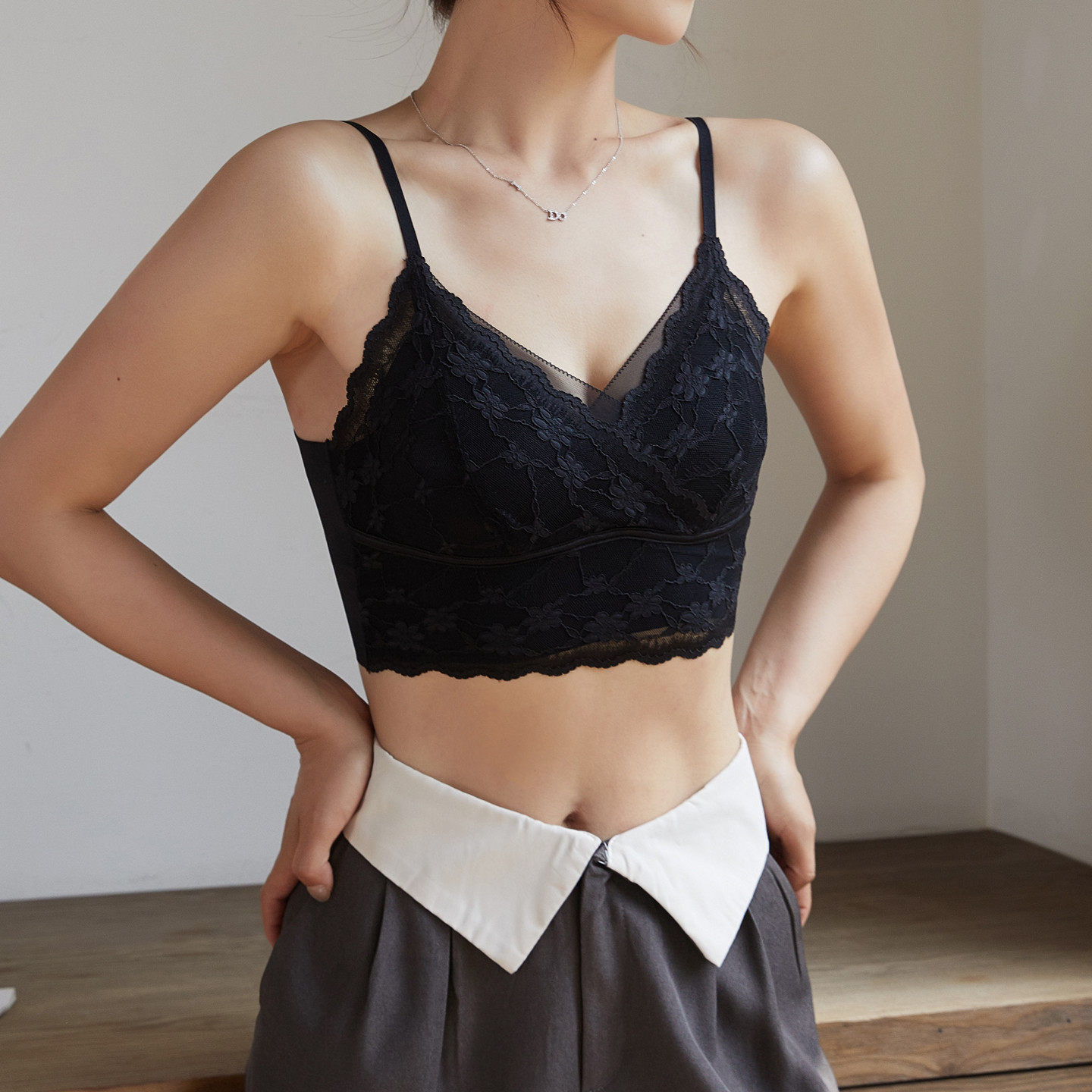 法式三角杯冰丝美背内衣女打底细吊带背心抹胸式文胸女带胸垫薄款