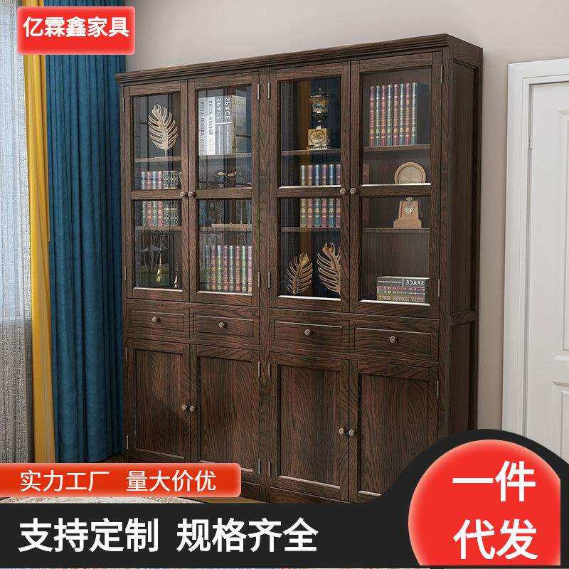美式实木书柜玻璃门客厅收纳柜组合书架家用卧室书房墙落地推拉门