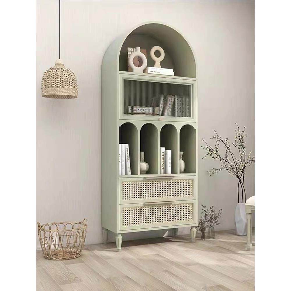 美式实木书柜轻奢儿童落地小书架酒柜北欧餐边柜法式复古拱形装饰