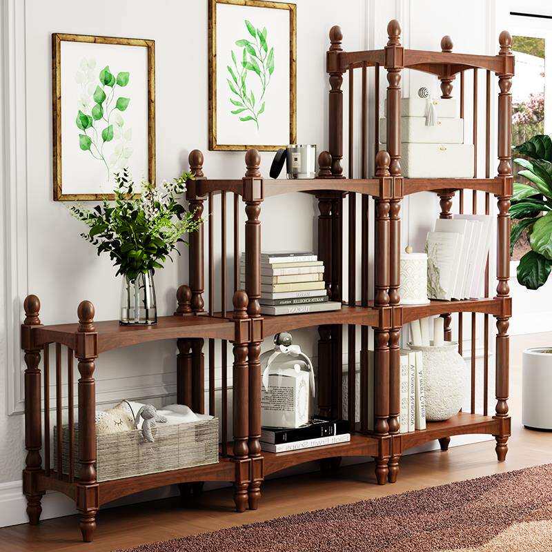 美式实木书架客厅落地欧式书柜家用多层置物架儿童收纳小隔断柜子
