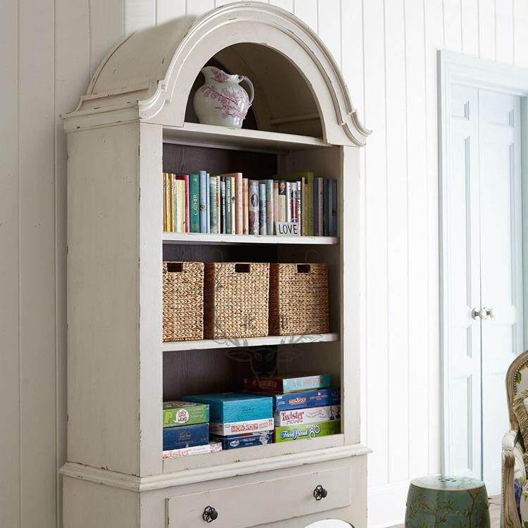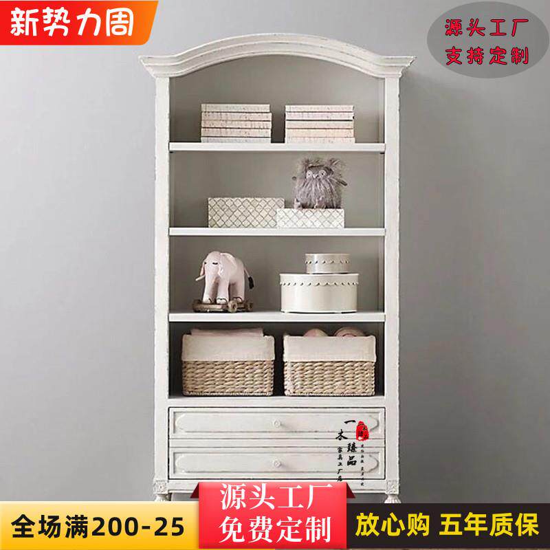 美式实木书柜仿古白做旧复古展示柜收纳柜后现代儿童小书橱多层架