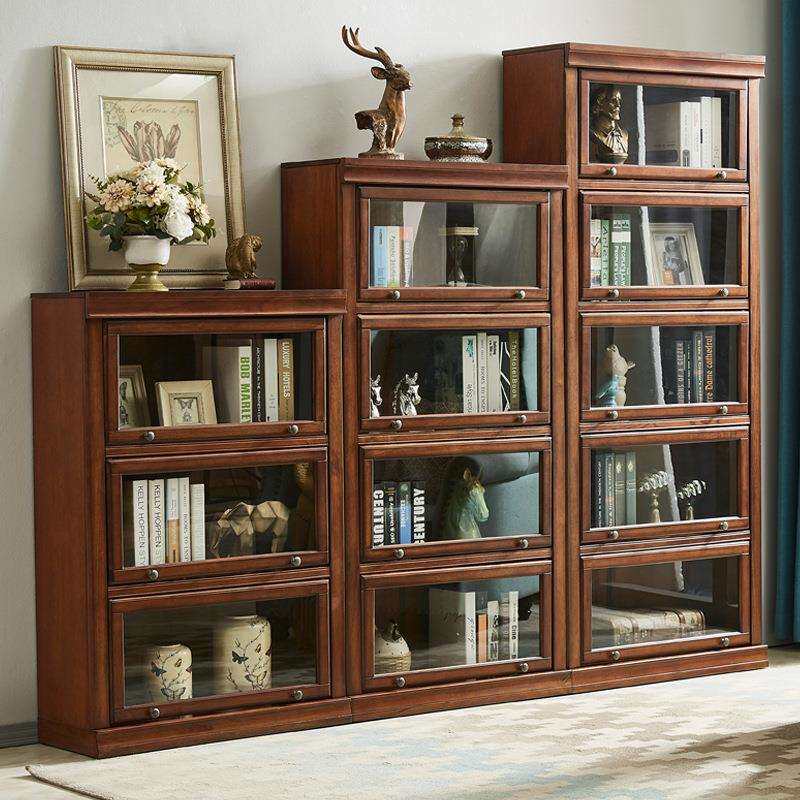 美式实木书柜带玻璃门防尘书柜家用儿童书架客厅现代简约组合书柜