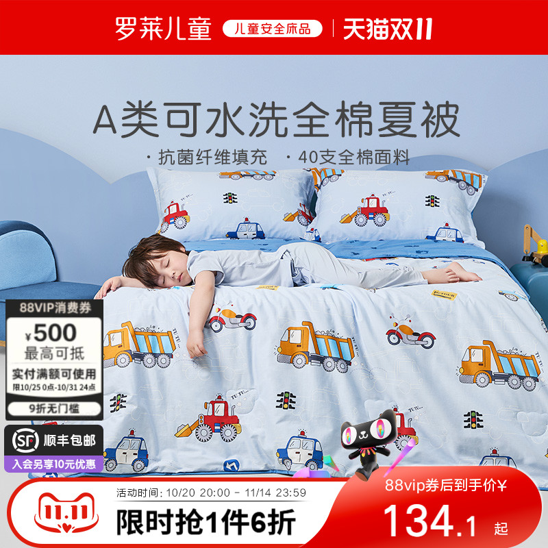 水星家纺幼儿园宝宝A类全棉抗菌被套被子套被罩儿童纯棉被罩换洗